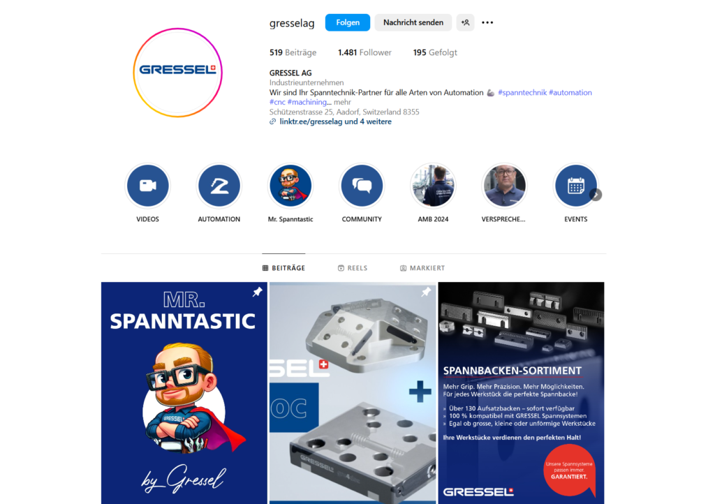 Bei der GRESSEL AG habe ich bis zum Mai 2025 die Social Media Kanäle LinkedIn, Instagram, Facebook sowie Youtube geleitet und mit Content ausgestattet. Unten können Sie die genannten Plattformen einsehen: